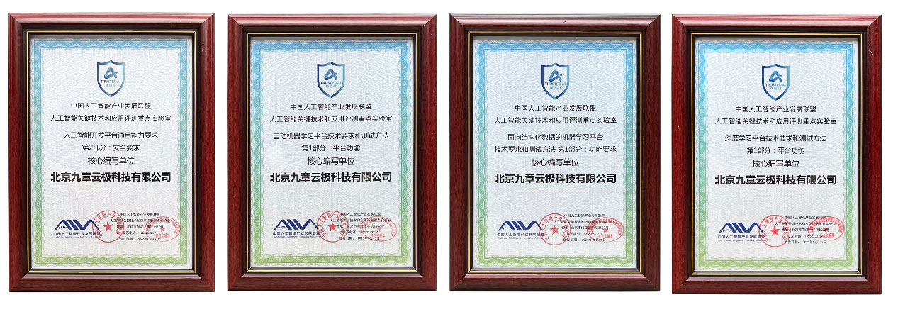 同日,中国信通院重磅发布了AI开发平台系列标准,其中九章云极DataCanvas公司深度参与《人工智能开发平台通用能力要求 第2部分:安全要求》《自动机器学习平台技术要求和测试方法 第1部分:平台功能》《面向结构化数据的机器学习平台技术要求和测试方法 第1部分:功能要求》《深度学习平台技术要求和测试方法 第1部分:平台功能》四项标准的制订,并获得核心参编单位授牌。