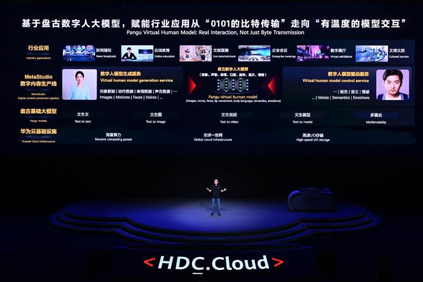 此外,为了让企业在AI时代构筑更强的内容创新能力,华为云通过盘古基础大模型赋能MetaStudio数字内容生产线,打造了盘古数字人大模型,提供模型生成和模型驱动两大服务,并已经使用了20万小时音视频数据进行了预训练。基于这两大服务,开发者可以快速生成和驱动数字人模型,赋能在线教育、文娱直播、企业会议等行业应用,让每个企业员工实现“数字人自由”。例如,用户只需在华为云MetaStudio的服务页面上传20秒的个人视频,就可以快速生成个性化的数字人讲解视频,过去3个研发人员3天完成的工作,现在只需要3分钟就可以完成。