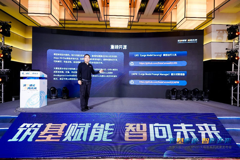 发布会上,九章云极DataCanvas公司自主研发的DataCanvas Alaya 九章元识大模型矩阵正式开源一系列新成果,其中包括「Alaya-7B大模型系列」中的Alaya-7B Foundation Model通识大模型和Alaya-7B Chat Model对话大模型两大模型,以及「LLMOps大模型工具链」中的LMS模型运行工具和LMPM 提示词管理器两大工具。