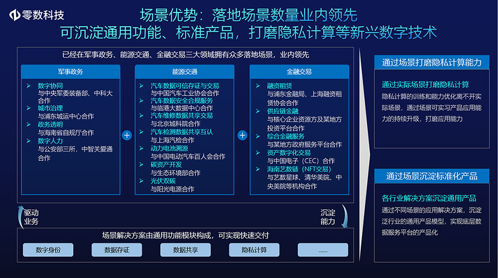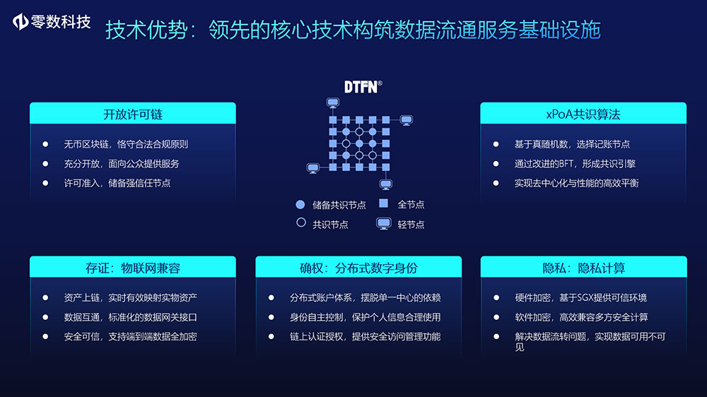 所以,透过建设开放许可链,研发xPoA共识算法、数字身份、隐私计算等核心技术,零数科技构筑了完善的数据流通服务基础设施,并在数据的资产化流通交易和资产的数字化交易方面得到广泛应用。