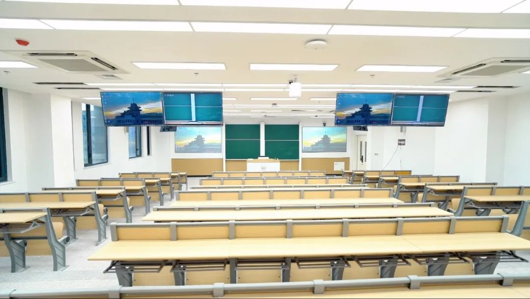 走进南农滨江校区教学楼,讲授型教室、互动研讨室、岛屿型教室、马蹄型教室等不同的教室类型满足了不同功能的教学需求,同时科技感满满。高清激光显示屏、交互式智能平板、智能一体化讲台等前沿的数智化设备,提供了沉浸式的学习体验。