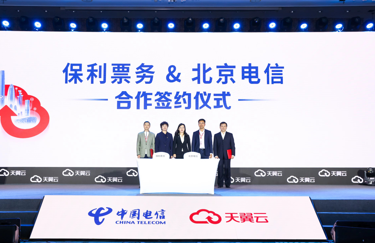活动现场举行了央国企上云白皮书发布仪式和客户签约仪式。信通院云大所云计算部主任马飞、天翼云科技有限公司助理总经理宫梅霞、天翼云科技有限公司北京公司副总经理李京共同出席发布仪式;中国电信北京公司与北京保利票务发展有限公司签订了保利票务上云项目。