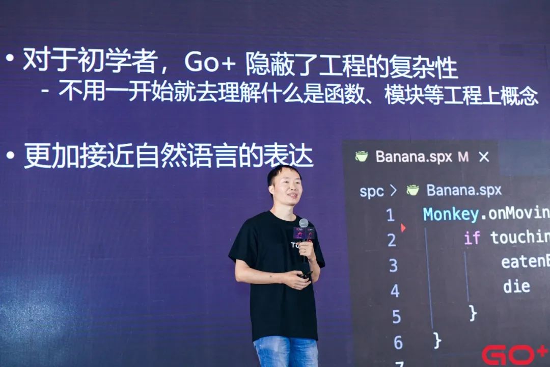作为Go+语言贡献者代表,秒熊英语CTO陈东坡用“以Python之形结合Go之心”形容Go+的特点,融合工程开发的Go、数据科学的Python和教学领域的Scratch,让程序员与数据科学家沟通无碍,使初学者更易入门。