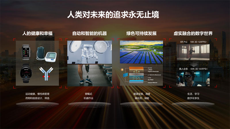 面向未来,我们认为数字技术将以超过十年百倍的速度增长,数字化将促进人和社会加速发展。