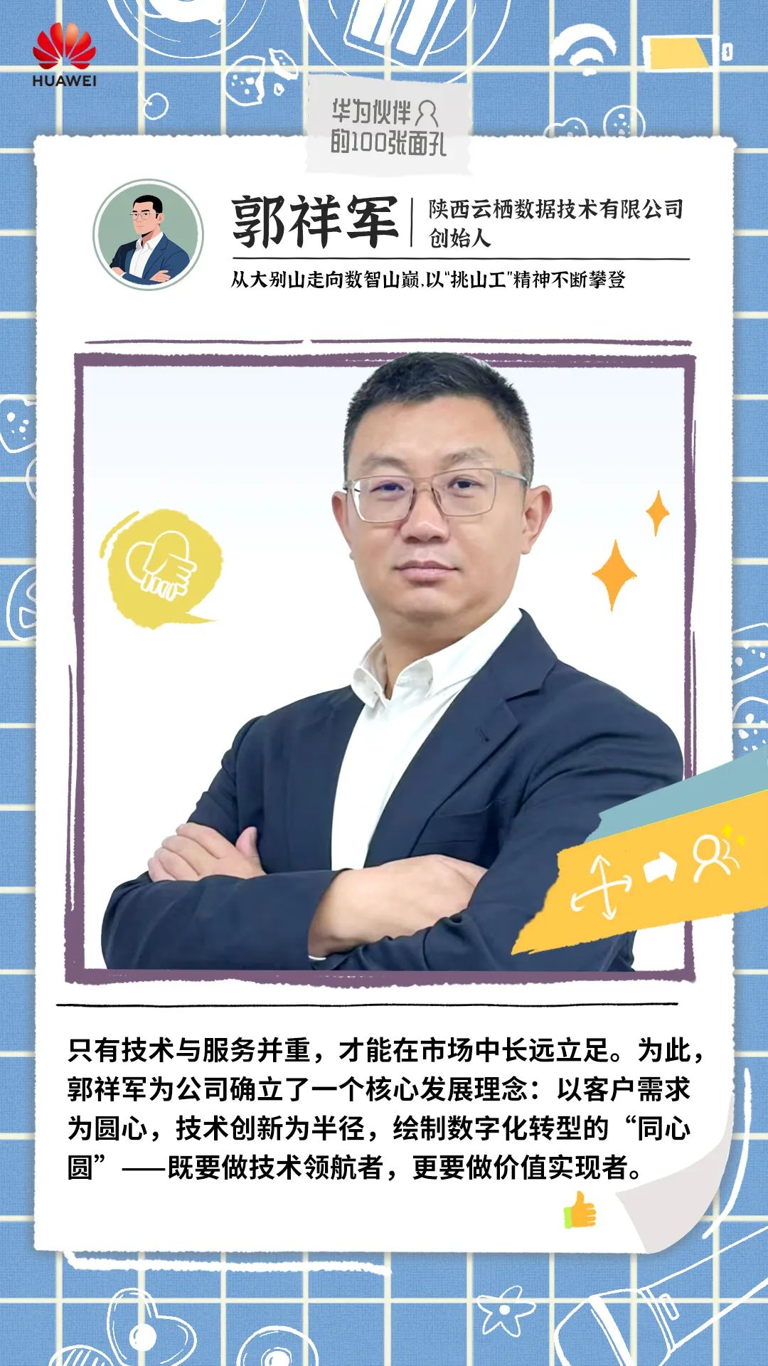 二十年后,郭祥军创立的陕西云栖数据技术有限公司已成长为陕西医疗信息化领域的行业翘楚,与华为共建医疗联合战队深拓市场,年营收逼近亿元。从医疗到制造,沿着行业深入布局;从单一设备销售转向“产品+服务+解决方案”供应商,做让客户满意的能力型伙伴,郭祥军带着云栖数据攀上西北数字化浪潮的浪尖。