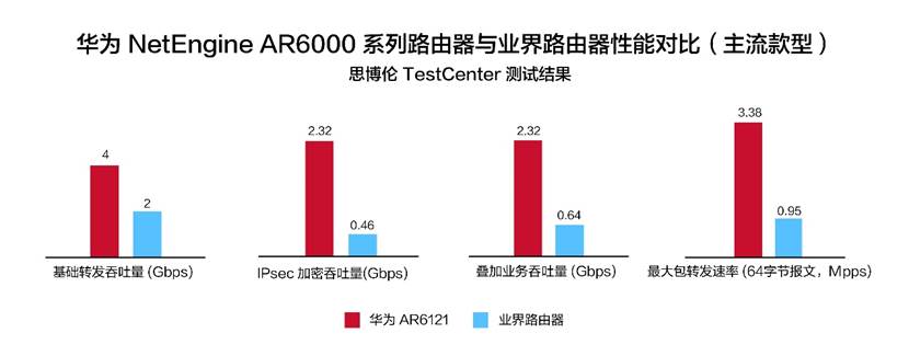 设备性能永远是企业追求的核心,对于一个广域网络接入路由器来说,性能是保障业务运行和体验的关键。在此方面,华为再次引领企业分支路由器在转发技术领域的重大技术变革,5G AR创新性采用多核CPU+NP的异构转发架构,使得转发性能达业界平均的3倍。