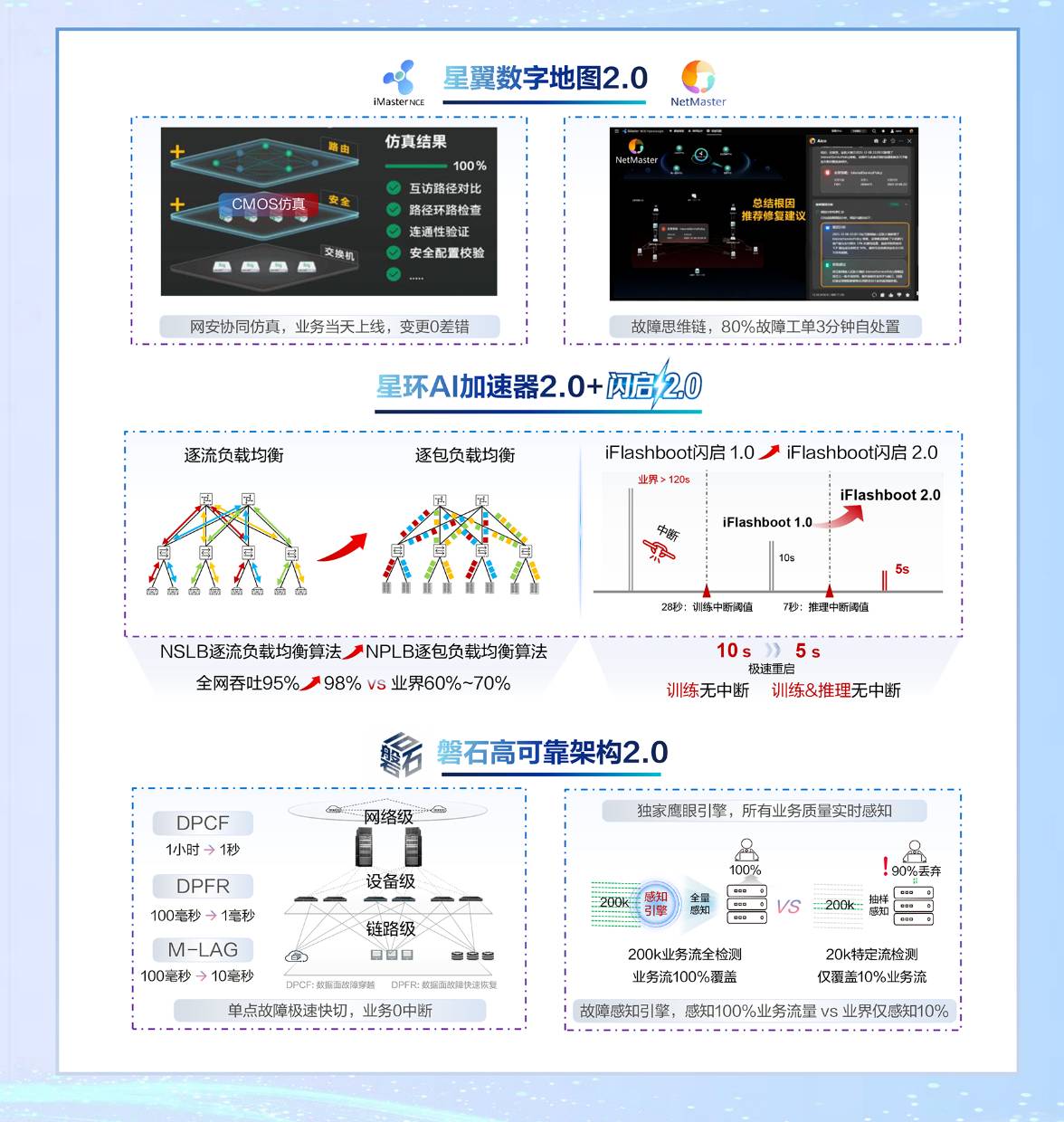 面向推理业务,华为新发布闪启2.0,将交换机故障重启时间压缩至5秒(业界普遍为120秒),确保推理业务零感知,不中断。