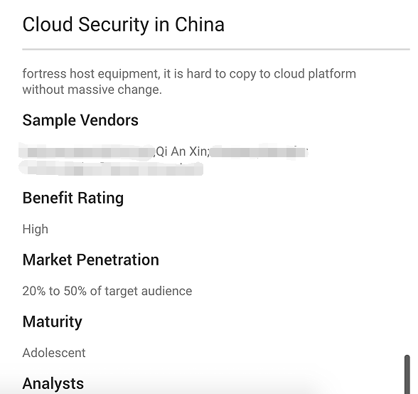 Gartner认为,中国的云安全市场目前正处于爬升阶段,未来将会有20%-50%的用户采用相应的云安全产品和服务,并且将从中获得较高的收益。对此,Gartner建议用户需要明确云安全的责任关系并且打造云安全框架。目前,奇安信基于内生安全理念,推出的新一代网络安全框架,改变了以往"局部整改"和产品堆叠为主的安全规划及建设模式,并且从客户视角出发,建立安全体系全景视图并指导指导客户建设完善的云安全体系。