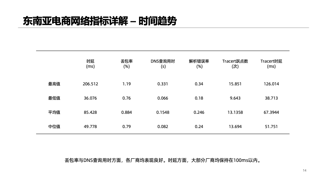 丢包率与DNS查询用时方面,各厂商均表现良好。时延方面,大部分厂商均保持在100ms以内。