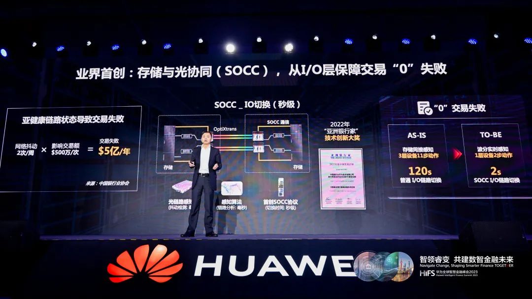 华为光产品线副总裁金志国详细介绍了基于F5G技术的金融智简全光网解决方案,通过SOCC存储和光协同、5ms极速倒换、同缆检测等创新技术,保证交易高可靠;通过硬管道等创新技术,保证金融全光园区数据传输零风险。