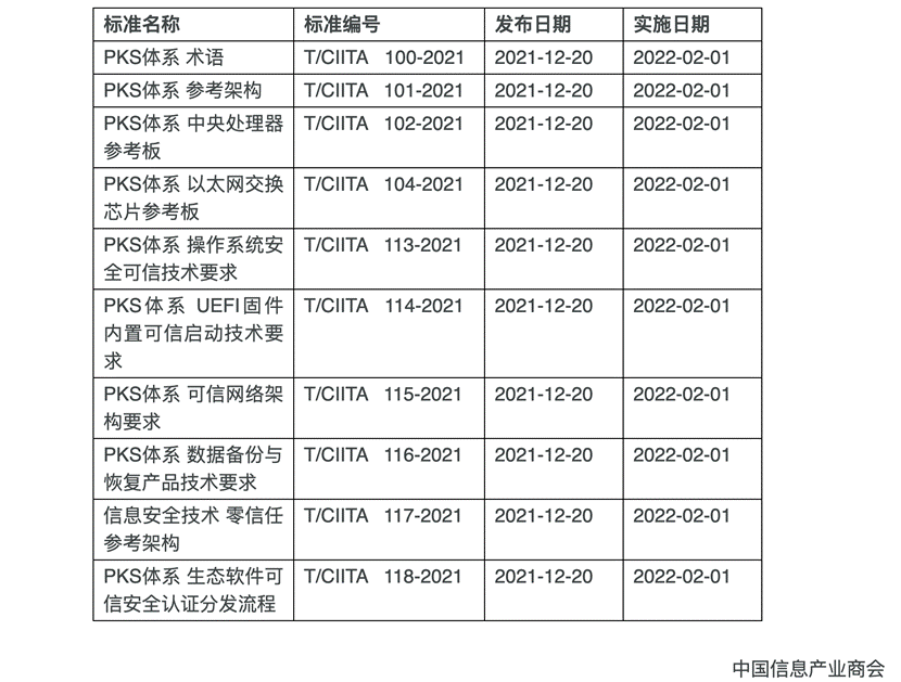 2021年12月24日上午,中国信息产业商会在天津举办的“PKS”安全先进绿色计算2021生态大会上现场发布了“PKS体系团体标准”,奇安信牵头编制的T/CIITA 117-2021《信息安全技术 零信任参考架构》团体标准位列其中,并将于2022年2月1日起正式实施。