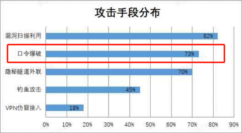 弱口令是指账号口令复杂度策略配置较低,或容易被攻击者获取的口令,通常有简单口令、默认口令、空口令、规律性口令、社会工程学弱口令等。由于其口令强度过弱,容易被攻破,堪称每年实战攻防演习的十大安全漏洞之首。而实战中通过弱口令获得权限的情况占比更是高达70%以上。
