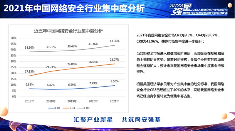 报告指出,当网络安全市场进入稳健增长阶段后,头部企业在规模和资源上拥有明显优势。随着时间推移,头部企业拥有的市场份额会逐渐扩大,预计未来我国网络安全市场集中度将会持续提升。