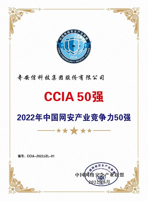 6月23日,中国网络安全产业联盟(CCIA)发布2022年中国网络安全市场与企业竞争力分析报告。报告显示,奇安信蝉联“中国网安产业竞争力50强”榜单第一。