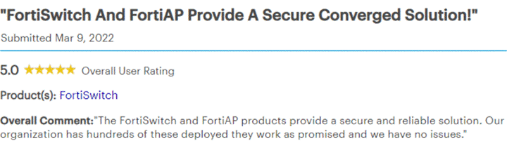 FortiSwitch 和 FortiAP 提供全面融合的安全解决方案——“FortiSwitch 和 FortiAP 产品可谓安全可靠的解决方案。我们的组织已部署了数百台设备,表现稳健,名不虚传,目前全部正常运转,我们非常满意。”
