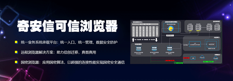奇安信可信浏览器可实现业务系统统一访问入口,通过管控中心能力结合和业务系统深度绑定,可有效提升政企办公人员工作效率,降低政企管理运维人员的协作成本,保护信息数据安全,增强企业网络安全。