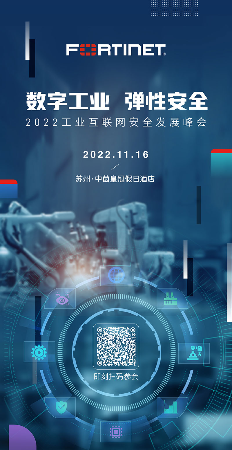 面对挑战,着眼未来。作为全球领先的综合性网络安全厂商,Fortinet将于11月16日举办“数字工业 弹性安全”2022年工业互联网安全发展峰会系列活动,站在全球视角呈现更多工业互联网安全观察与行业趋势,释放更多前沿信息,值得关注。