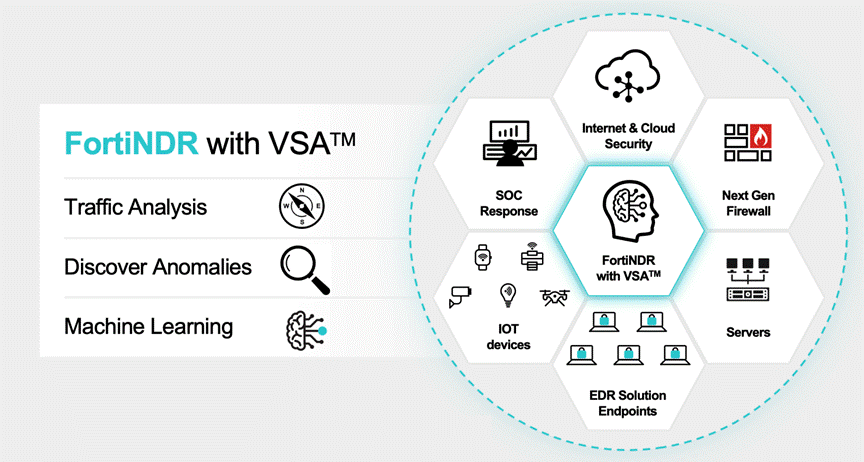 此外,针对高级用户提出的专门针对自己的独特网络、应用和计算资源建立一个私有的、基于AI的实时威胁情报检测中心的需求,Fortinet的答案是,可以!FortiNDR正是合适之选!这是一款基于AI的网络检测与响应(Network Detection and Response)解决方案,可以部署在客户的私有网络(On-Premise),通过FortiNDR的AI芯片和算法加速,构建秒级的未知威胁检测技术,并自动产生私有威胁情报。这些私有威胁情报与FortiGuard提供的云威胁情报相辅相成,让本地和云端的AI同时为客户提供对抗“黑色”AI的能力。