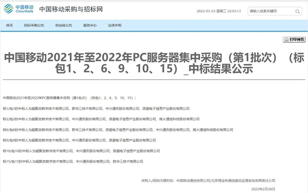 而用户信任的底蕴更令我们对超聚变的未来充满信心。在今年2月底公布的中国移动“2021年至2022年PC服务器集中采购(第一批次)中标结果公示”当中,超聚变以最大份额中标,招标总量近10万台。同时,在此前中国联通云服务器集采中,超聚变也同样入围了最终的名单。连续中标大型标杆客户采购,也意味着超聚变正在“收复”本该属于它的“江湖地位”。