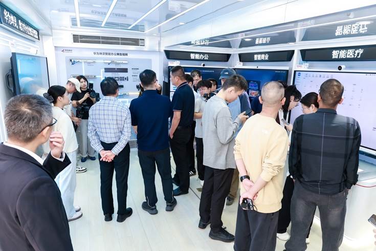 活动现场,华为坤灵场景智能展车成为热门“打卡”点,参观者可在展车内沉浸式体验华为坤灵“4+10+N”中小企业智能化方案,亲手操作AR180网络Wi-Fi测速、IdeaHub投屏协作等功能,直观感受方案的易用性与高效性,体验Wi-Fi 7技术等创新功能带来的效率提升。此外,会场序厅的智能化专属展区,模拟了办公及商业组网环境,并展示了华为会议平板新品IdeaHub S3等,吸引了到场嘉宾驻足交流。